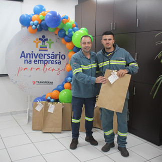 Por meio do programa Aniversário na Empresa, a Transferro reuniu os aniversariantes de setembro e outubro com os gestores das áreas, para comemorarem o início de mais um ciclo. A iniciativa tem o objetivo de integrar a equipe e fortalecer o engajamento.