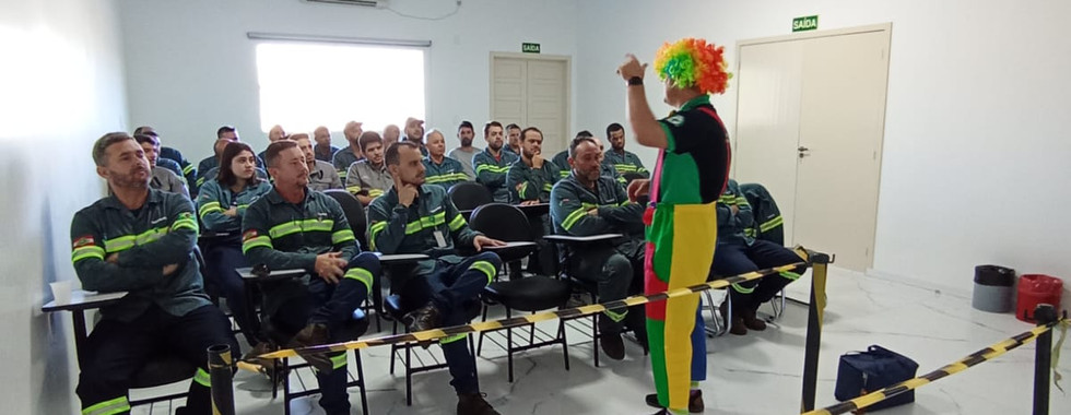 Durante a atividade, Medeiros enfatizou que, embora o colaborador seja o primeiro impactado em casos de sinistros, as consequências de um acidente estendem-se diretamente aos familiares. Com uma abordagem lúdica e bem-humorada, o palestrante utilizou dinâmicas práticas para simular as limitações físicas causadas por acidentes, como o desafio de abotoar o próprio uniforme utilizando apenas uma das mãos.
